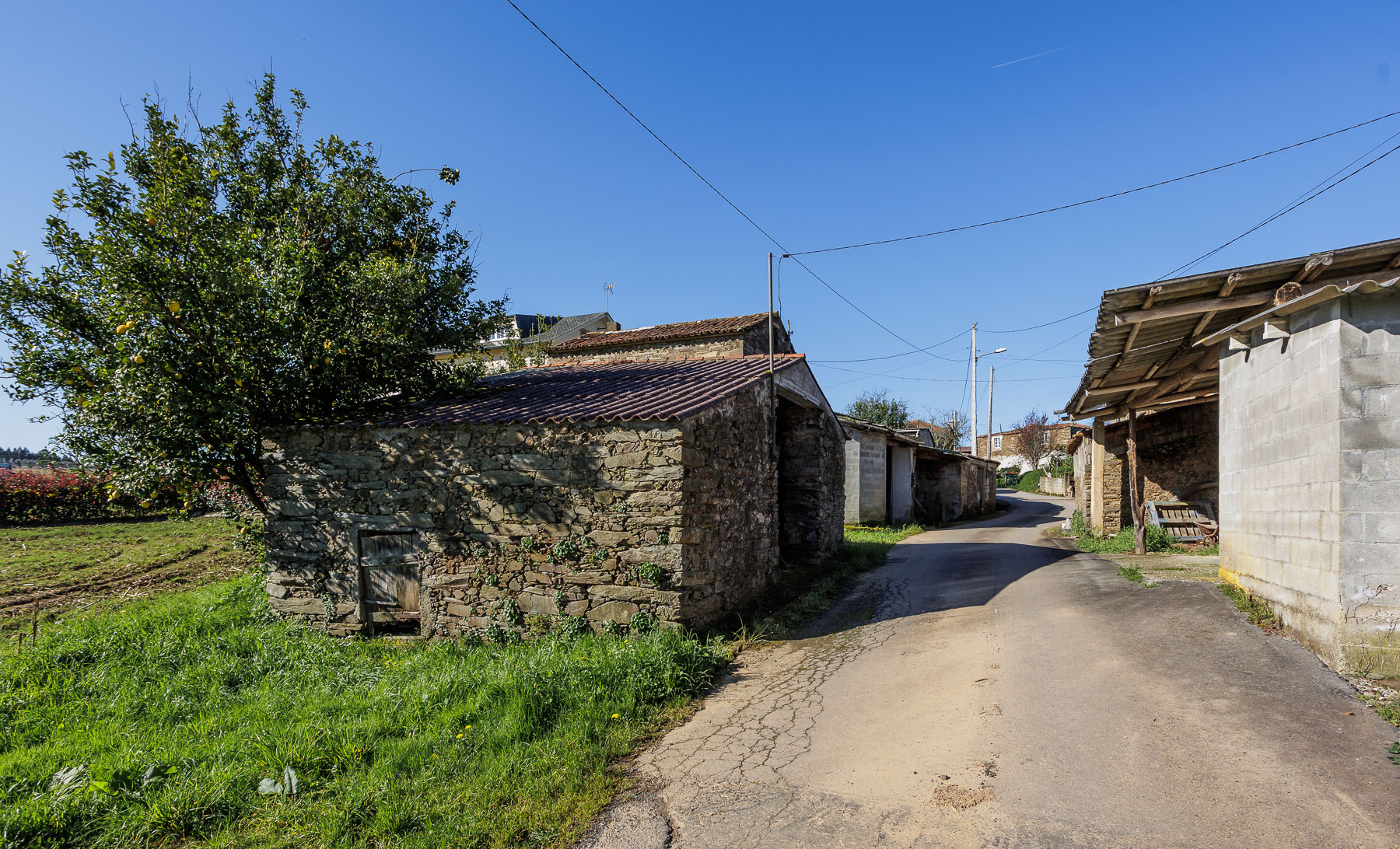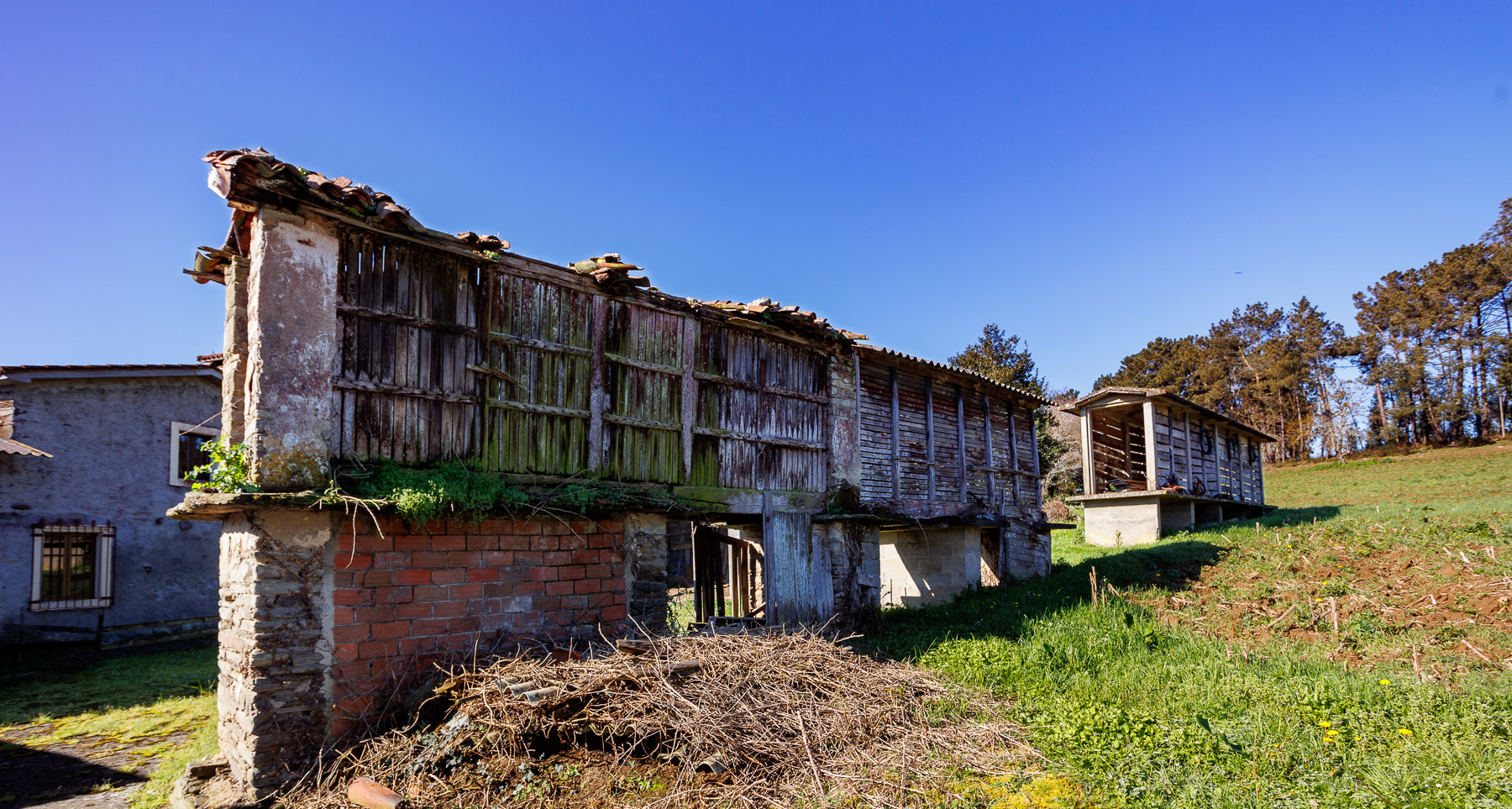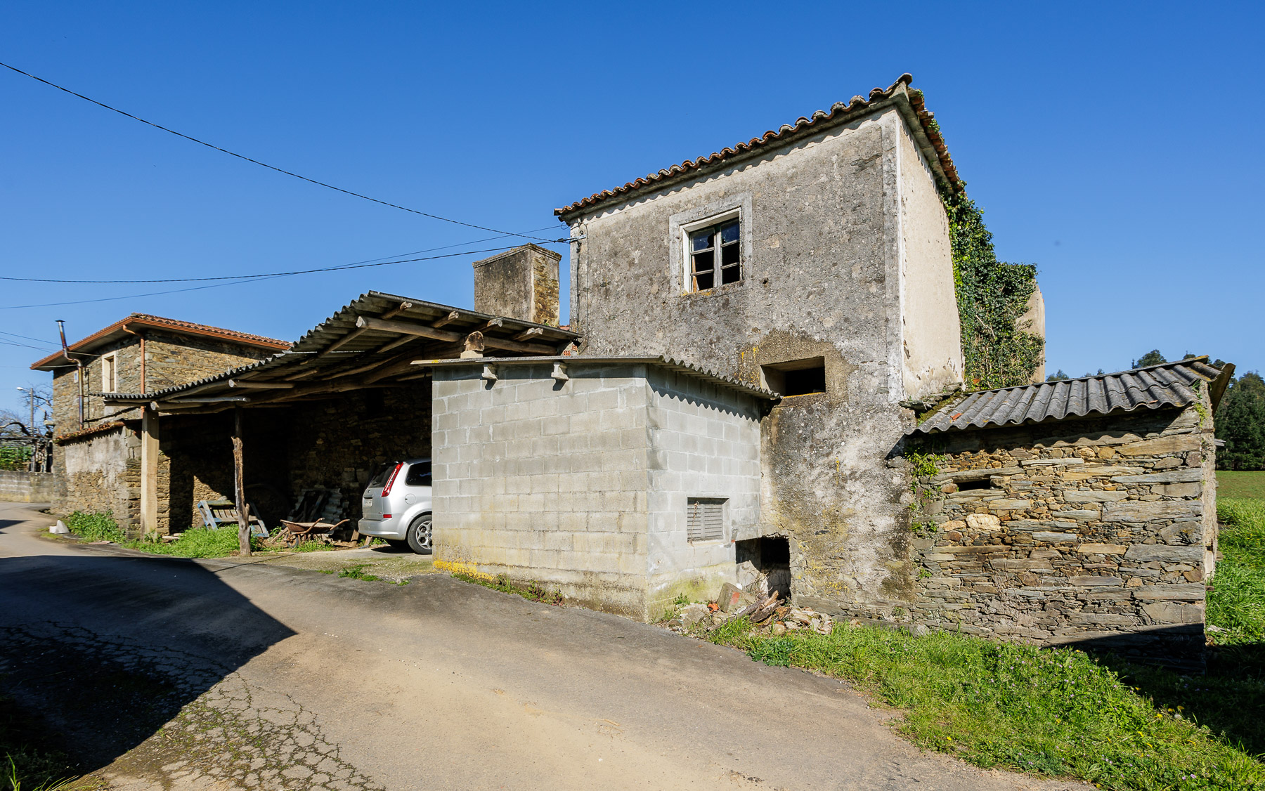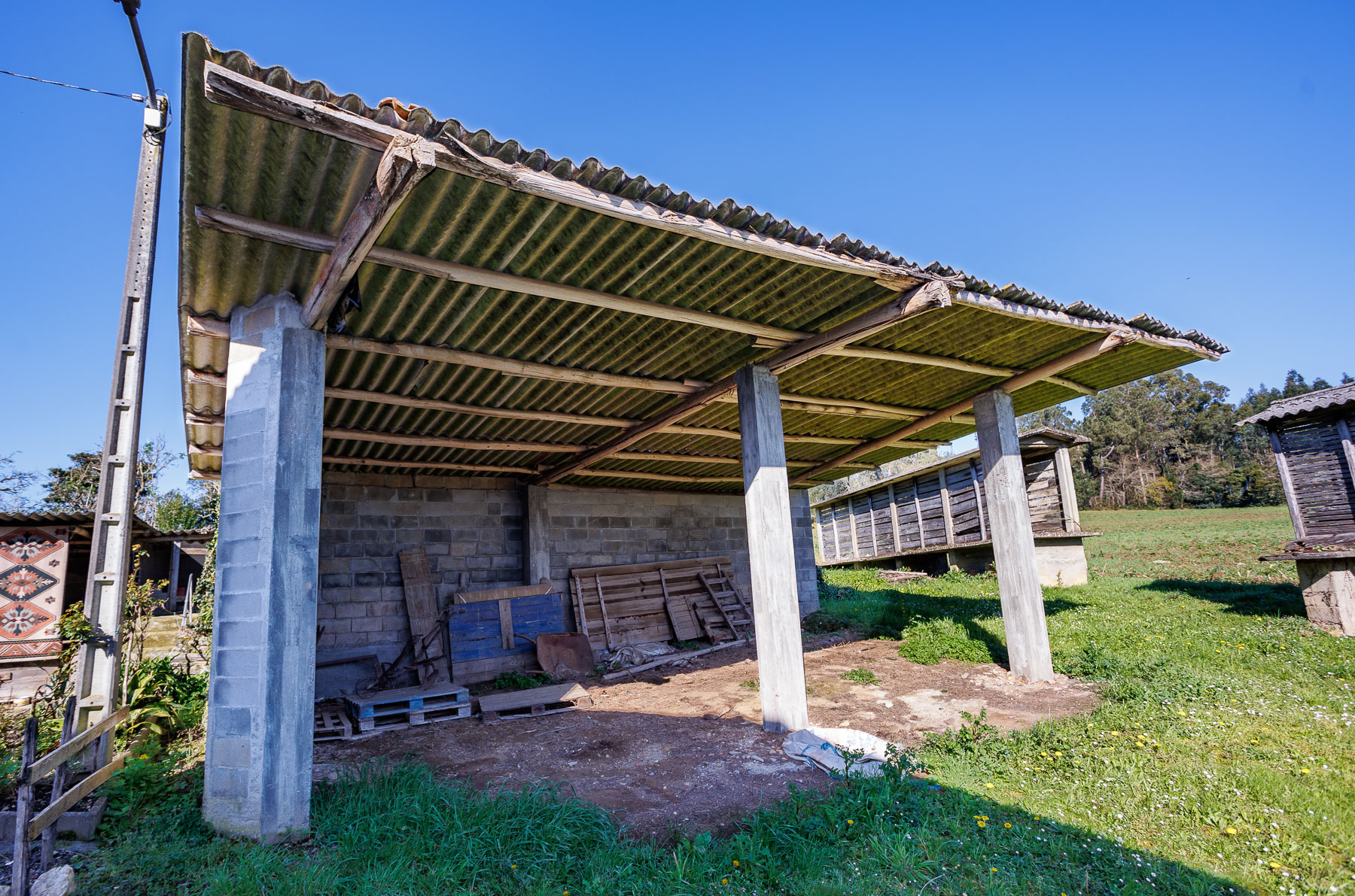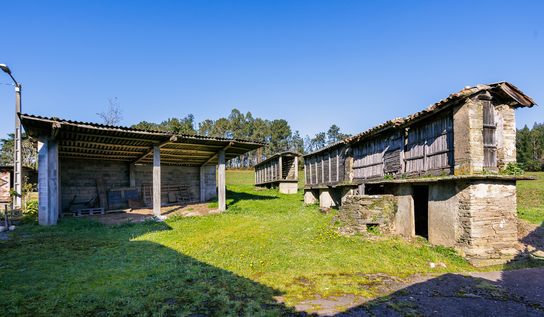 El conjunto incluye un alpendre de techos altos con enormes posibilidades de aprovechamiento, un garaje, y tres hórreos tradicionales gallegos. Uno de estos hórreos data de la misma antigüedad que la casa (1874), convirtiéndose en una pieza patrimonial de valor excepcional con sus características columnas de piedra y estructura elevada.