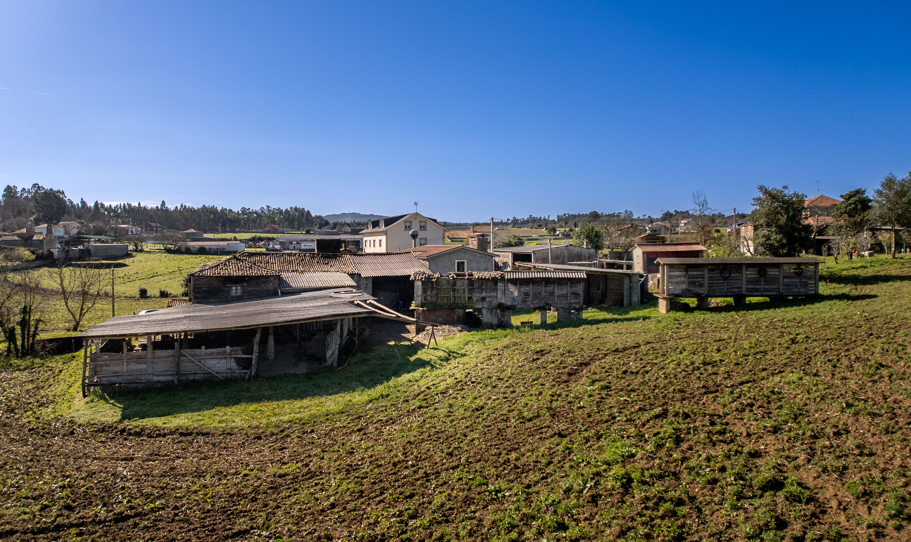 Esta propiedad histórica se encuentra a tan solo 300 metros del Camino de Santiago Inglés en Abegondo, A Coruña. Situada en el corazón de la comarca de As Mariñas dos Frades, la finca de 3,7 hectáreas abraza una casa de piedra del año 1.874 con tres hórreos tradicionales, alpendre y múltiples construcciones auxiliares.