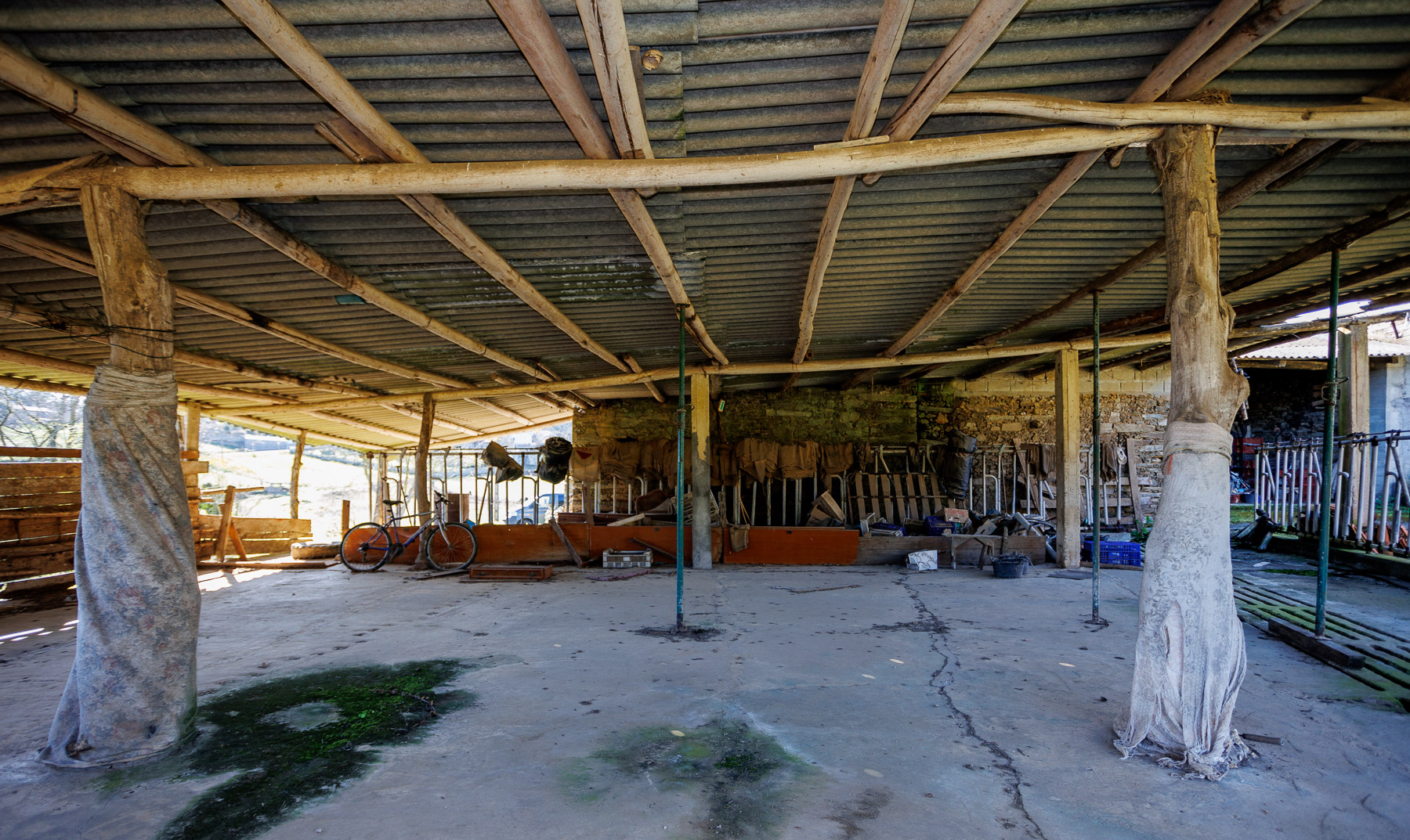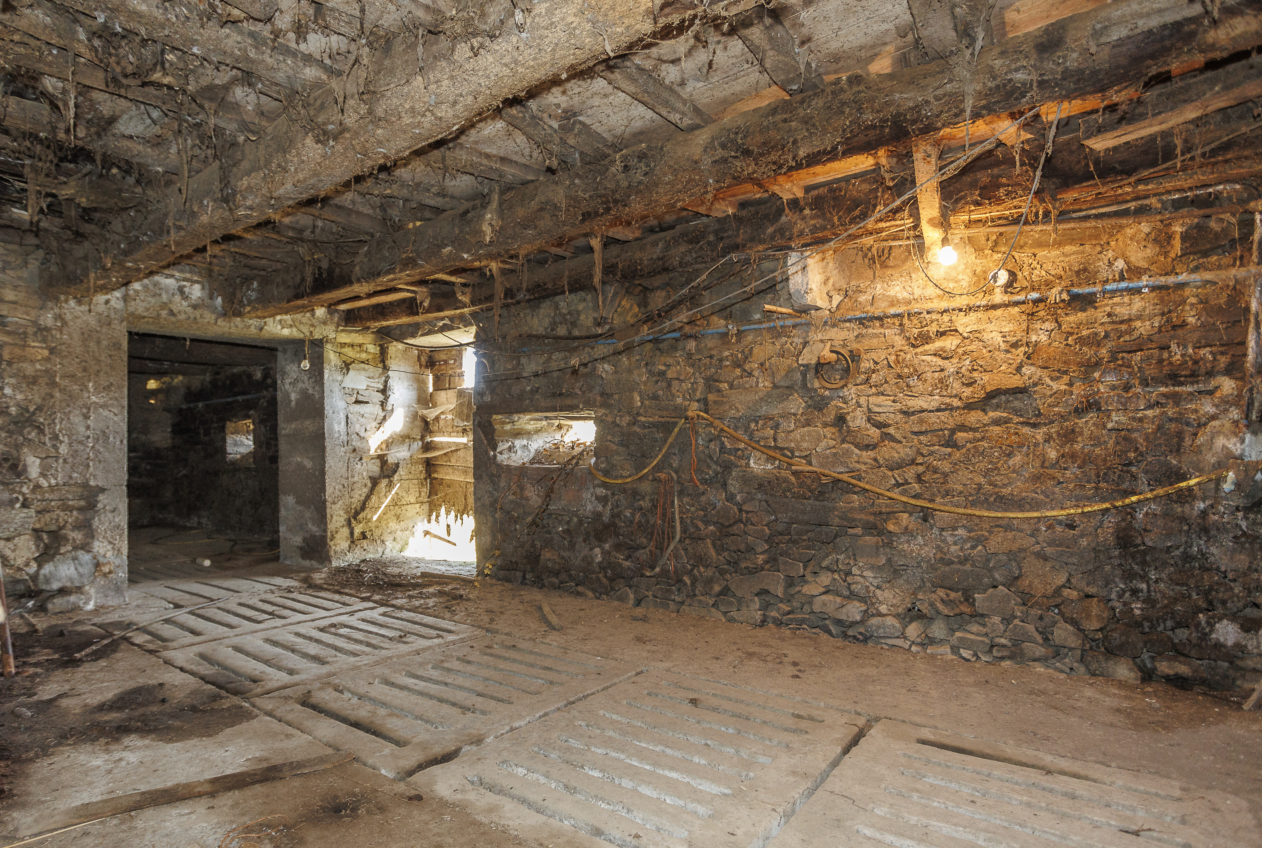 La planta baja, habilitada antiguamente para explotación ganadera, presenta un gran espacio diáfano que recorre todo el largo de la casa. Esta planta incluye además una cocina equipada para elaboración de queso artesano con cámaras frigoríficas profesionales, un cuarto de baño, una pequeña bodega donde se ubicaba el tanque frío para conservación de leche, y un salón de piedra con los muros originales.