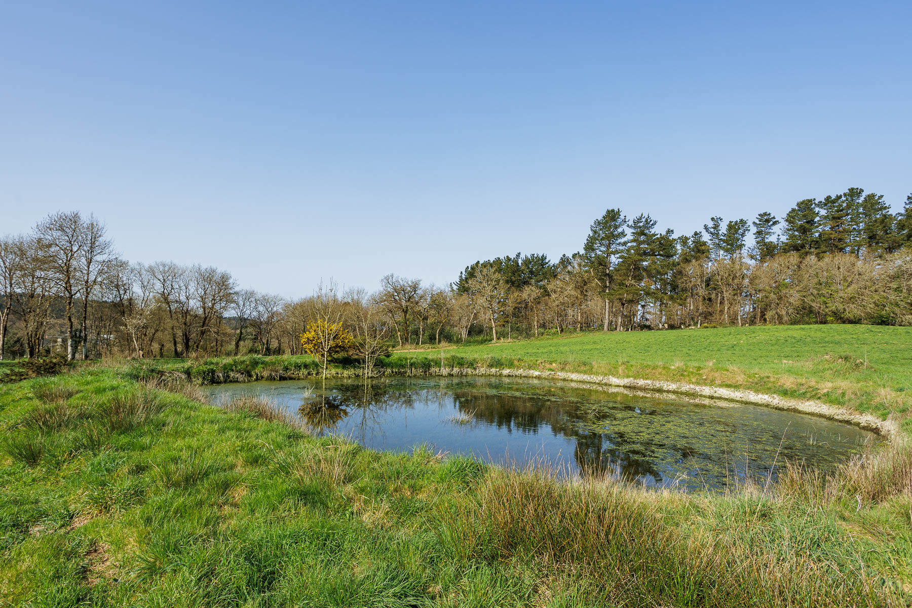 Los dos ríos que atraviesan y delimitan la finca forman una pequeña cascada que añade un encanto especial al paisaje, mientras que los tres estanques de diferentes capacidades y el pozo tradicional garantizan el abastecimiento hídrico. La propiedad cuenta con acceso asfaltado en su totalidad y suministro eléctrico, facilitando tanto el desarrollo de la restauración como el acceso con vehículos y maquinaria.