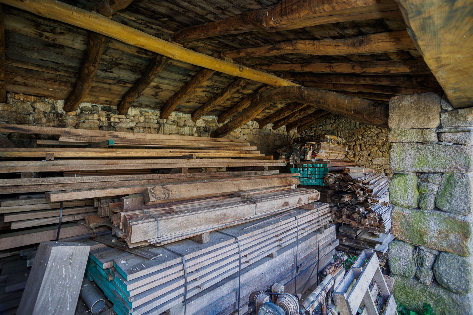 La propiedad destaca por contar con importantes trabajos de acondicionamiento ya realizados, donde se ha invertido en asegurar las paredes y colocar la armadura del tejado con recubrimiento de madera noble. El conjunto incluye grandes cantidades de madera de castaño de primera calidad y vigas, todo almacenado en perfectas condiciones y listo para completar los acabados finales.