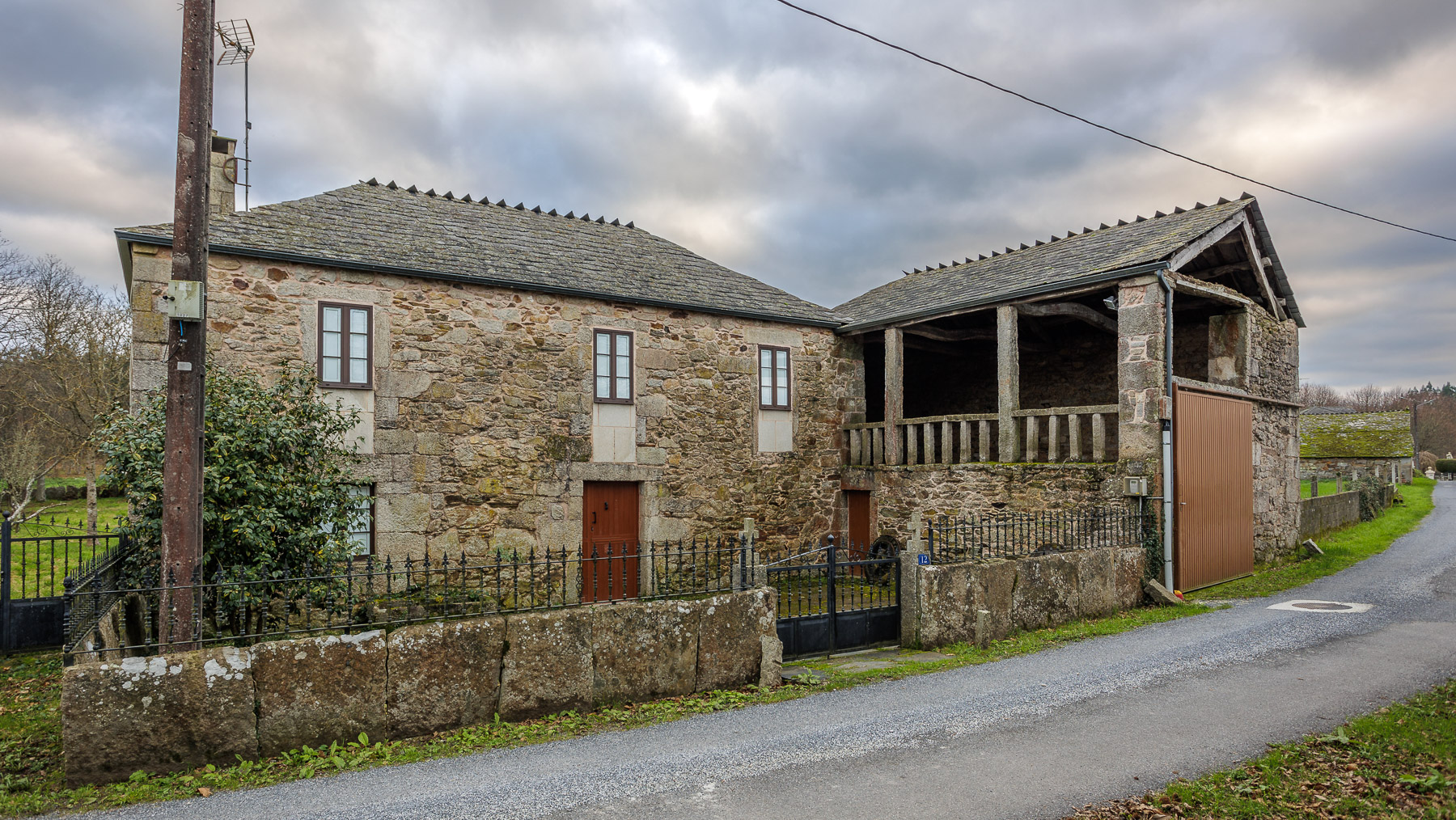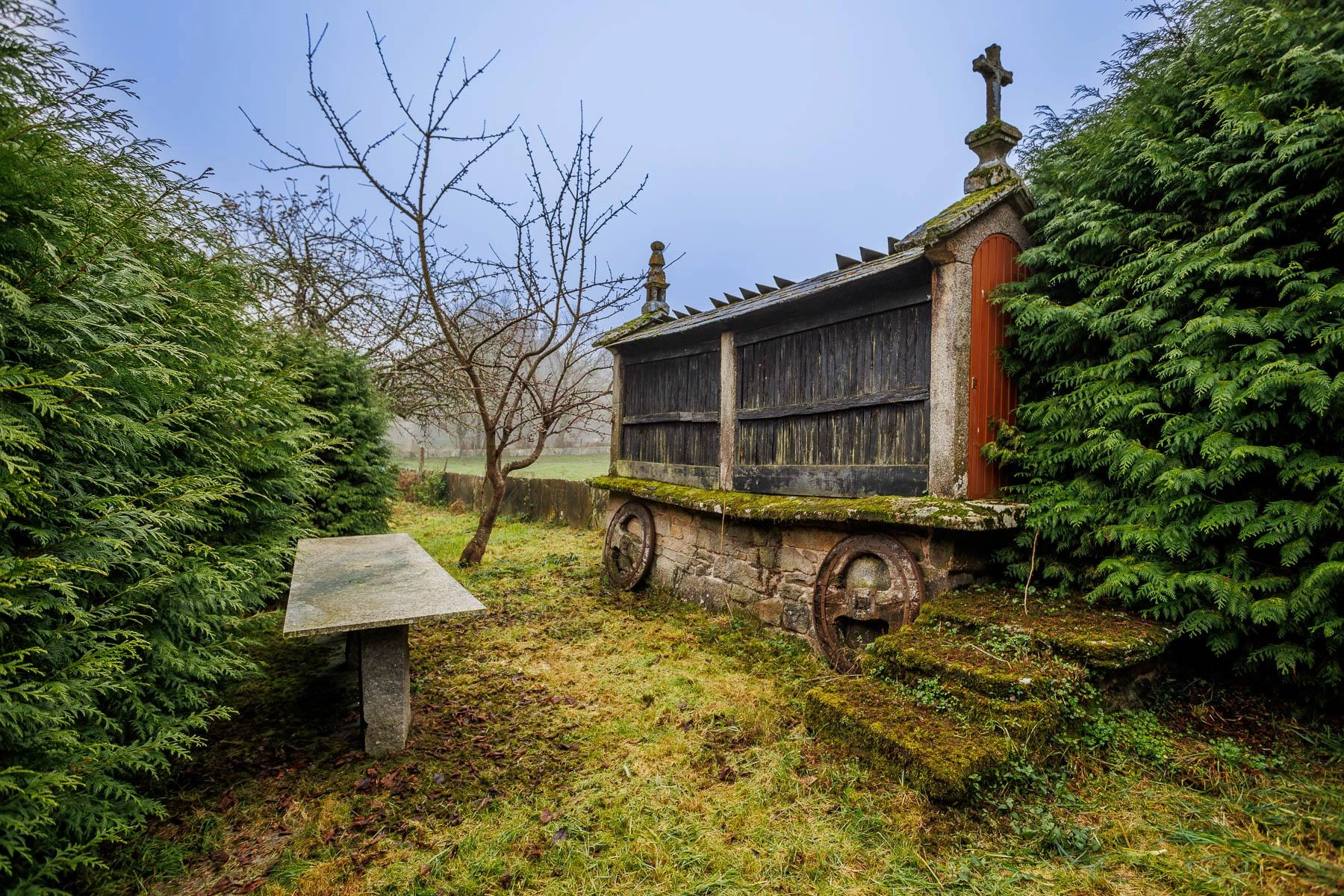 La segunda casa comparte la finca trasera con la principal y ofrece amplias posibilidades de restauración personalizada. El terreno completamente llano incluye varios árboles frutales, un hórreo tradicional gallego perfectamente conservado y una gran mesa de piedra ideal para reuniones al aire libre.