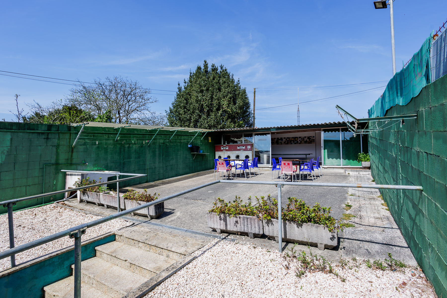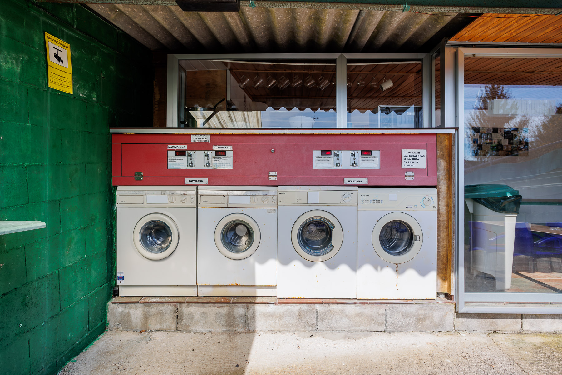 La planta superior alberga un espacio común que incluye una pequeña cocina con comedor, con acceso directo a una terraza exterior ideal para disfrutar en los días de clima favorable. El espacio está equipado con lavadoras y secadoras, completando la oferta de servicios.