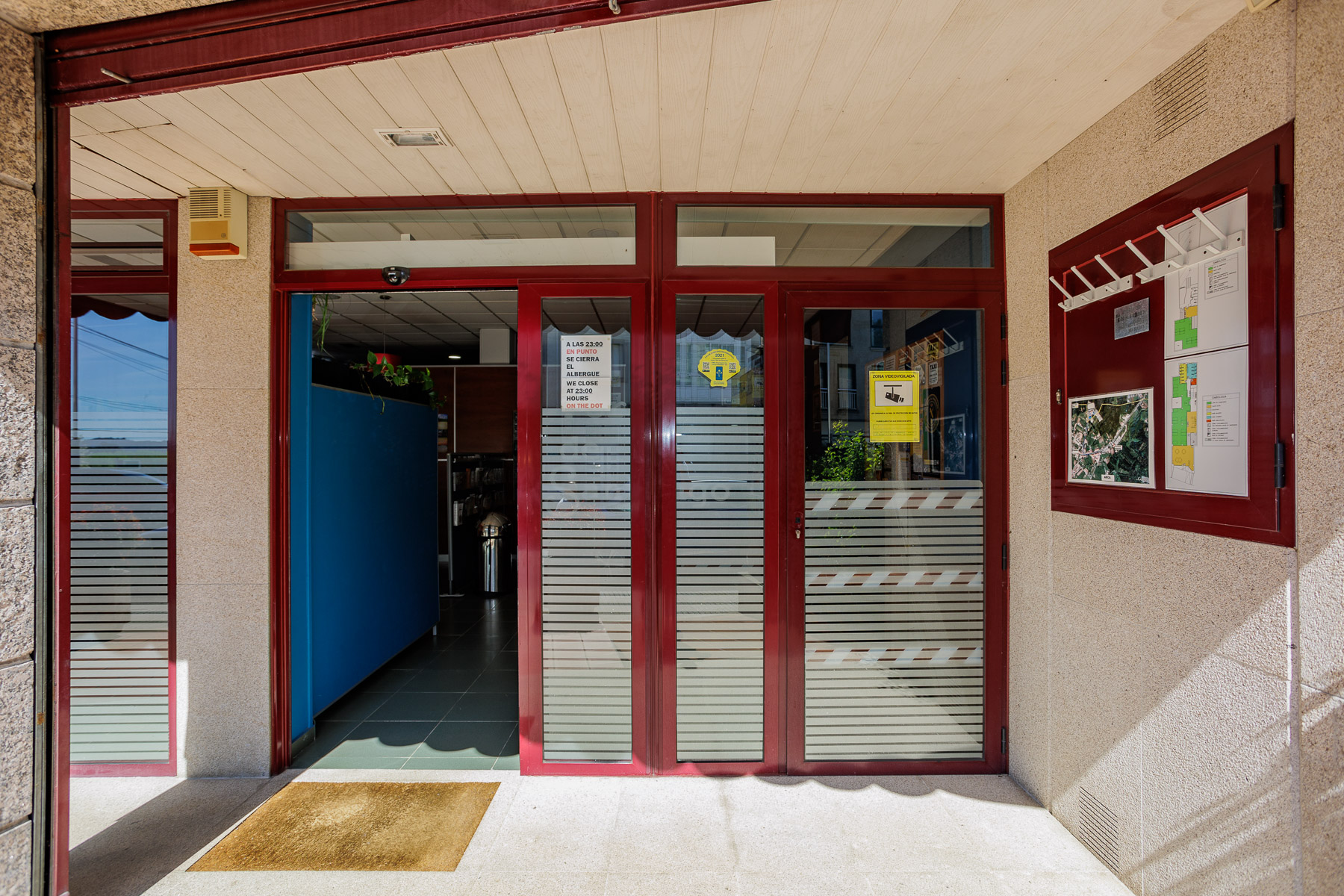 El albergue se encuentra a pie de calle, a escasos metros del ayuntamiento. Además de la entrada principal, que se encuentra en la vía más concurrida del pueblo, cuenta con un acceso adicional por la parte trasera que da a un camino rural menos transitado.