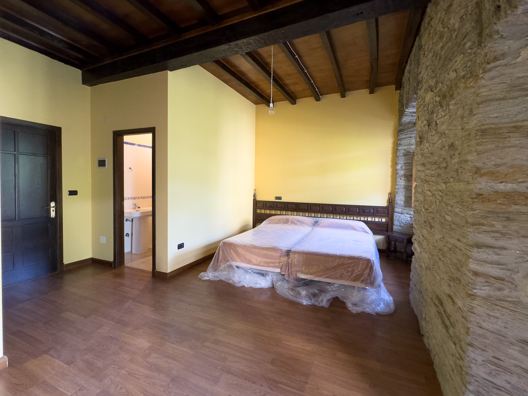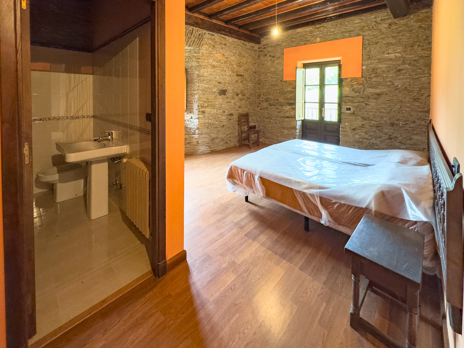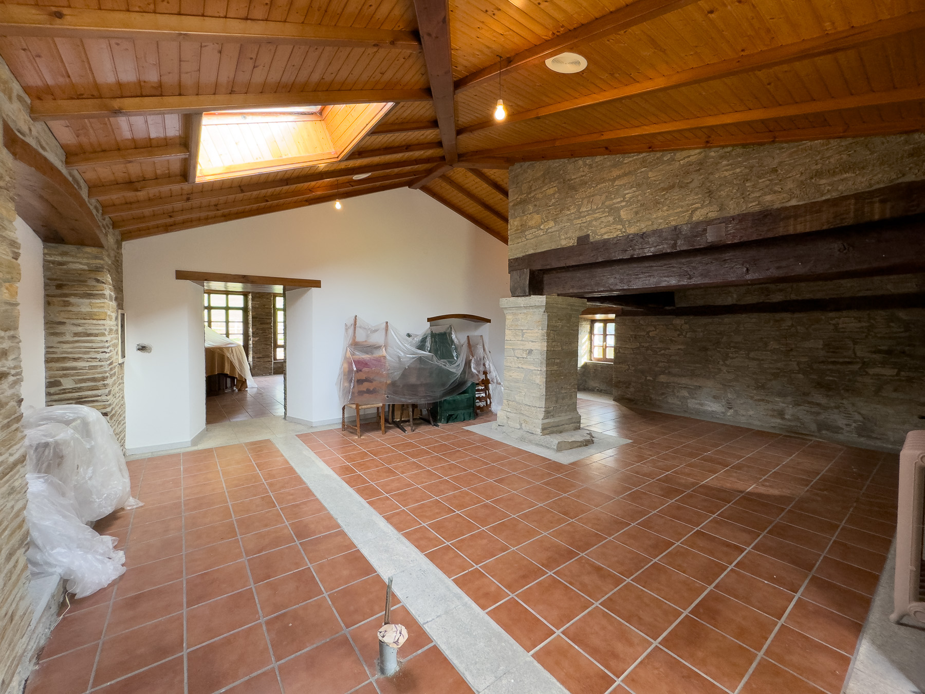 Los interiores han sido cuidadosamente restaurados conservando muros de piedra vista, vigas de madera originales y elementos decorativos históricos. La distribución incluye 8 habitaciones completamente equipadas con baños en suite, mobiliario de época restaurado y acabados de calidad. Los espacios comunes comprenden 5 salones, incluyendo uno construido alrededor de una enorme lareira rehabilitada y otro con una galería de madera acristalada que ofrece vistas panorámicas al entorno.