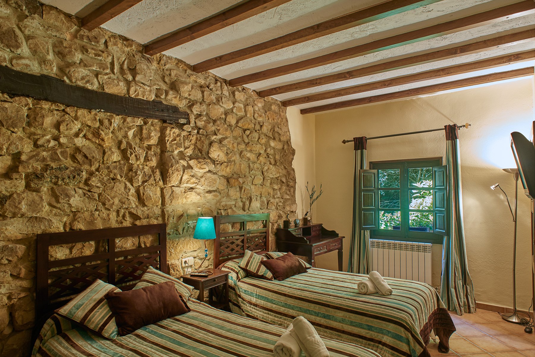 El hotel cuenta con 13 habitaciones completamente equipadas y distribuidas en dos plantas, cada una decorada con un estilo único que combina elementos rústicos tradicionales con acabados contemporáneos. Las habitaciones conservan elementos arquitectónicos originales como techos con vigas de madera vista, muros de mampostería de piedra y suelos de baldosa y de madera, ofreciendo espacios únicos que atraen al turista más exigente.